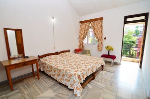 Accommodation Spacious and clean rooms with marble flooring, twin balconies having total privacy and ideal for sunbathing. The balconies face the Arabian Sea and also the East side from which one can get a view of the rising sun, lush green lawns/garden and swaying palms. Each room has twin beds and attached bathroom/toilet with 24 hours hot/cold shower. |